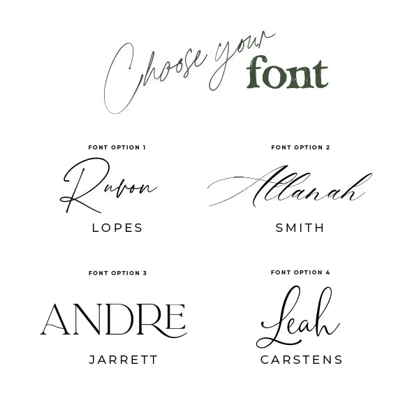 Once your order is placed, email your order confirmation number and chosen name to info@babycouture.co.za