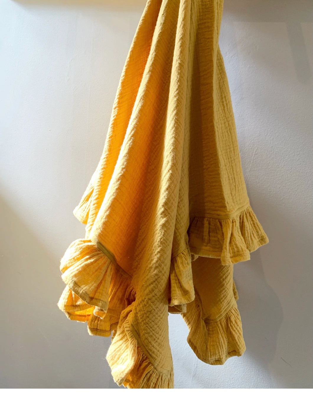 Our 100% cotton muslin blankets with ruffled edges are practical and stylish!