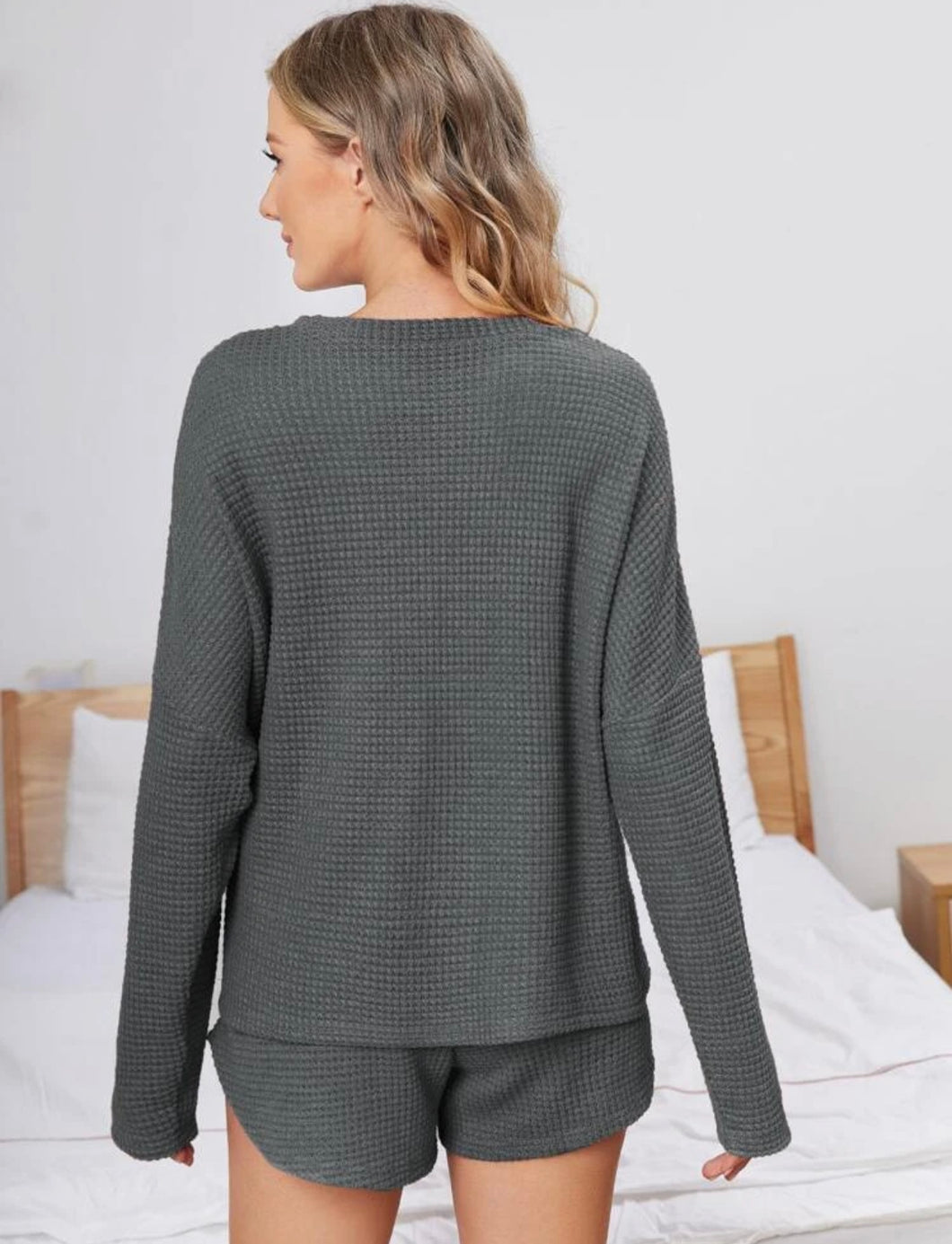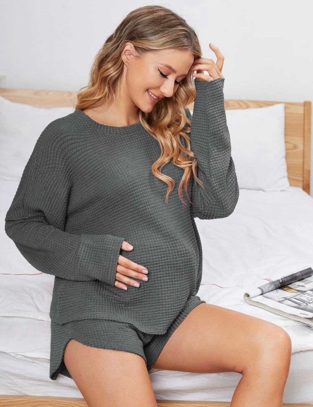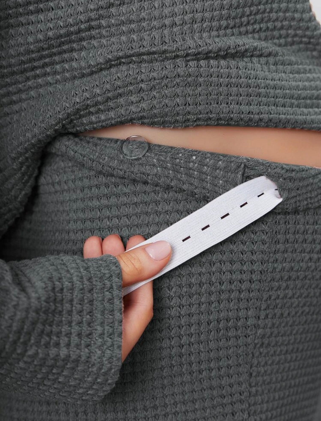 Maternity Waffle Knit Drop Shoulder Set - Dark Grey