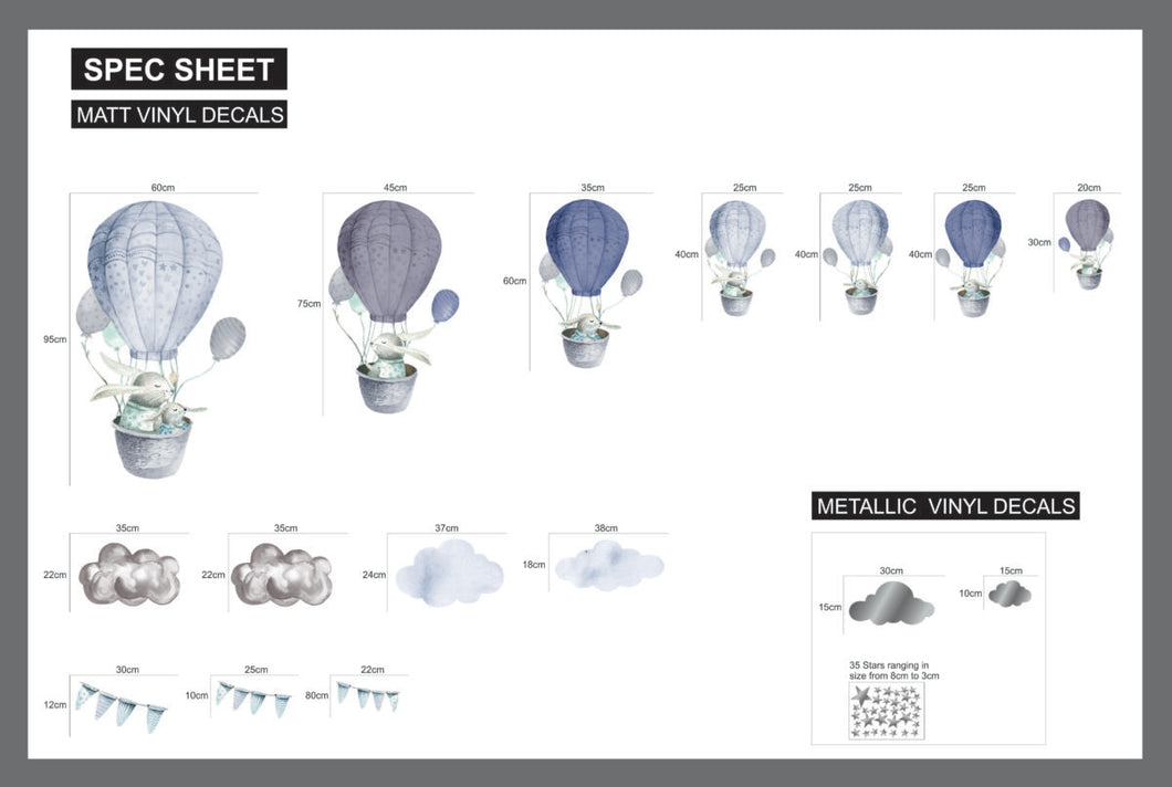 “Sometimes you have to fly a little further to dream a little bigger”. These magical, water colour decals are printed on removable matte vinyl and come in separate pieces so you can arrange them effectively to suit your room accordingly. It makes for an easy yet totally affordable way to transform a space. Please click on the spec sheet in the images to see what is included in your pack as well as the sizes.