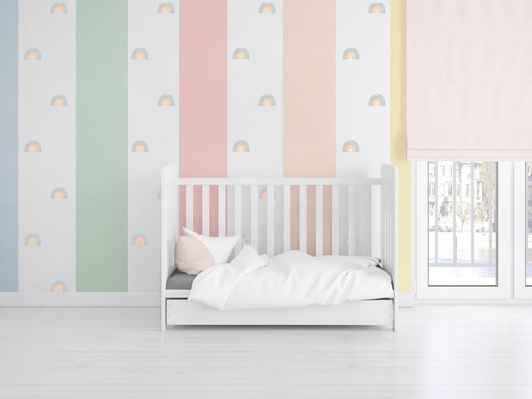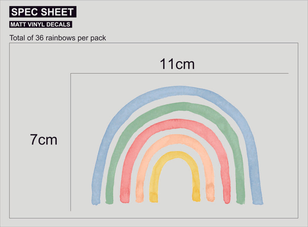 “Try to be a rainbow in someone’s cloud.” A modern take on a rainbow in this delightful colour palette. These mini rainbows are 12cm x 8 cm each with 35 in a pack. A perfect size to scatter amongst your room and cover a large wall space easily and cost effectively. Everyone feels contentment when seeing a rainbow so why not see one every day? We couldn’t think of a better way to bring “happy” into your little one’s space.